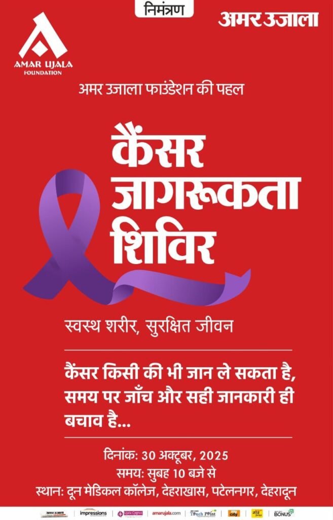 In continuation of these efforts, 25 students from the university also actively participated in the Cancer Awareness Camp organized by the Amar Ujala Foundation at Doon Medical College, Dehrakhas, Dehradun, on October 30. The objective of the camp was to educate people about cancer prevention, early detection, and life-saving awareness practices.