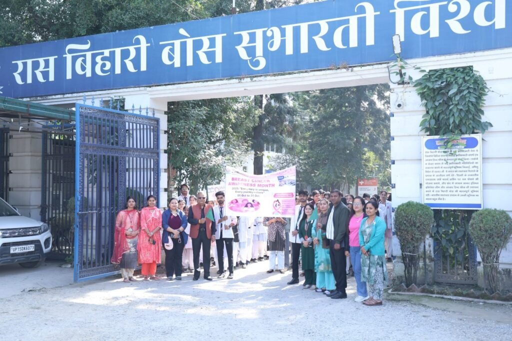 As part of Breast Cancer Awareness Month, Ras Bihari Bose Subharti University, Dehradun organized an inspiring Walkathon under the theme “Wear Pink, Walk for Hope” to raise awareness about breast cancer. The event aimed to emphasize the importance of early detection, highlight preventive healthcare, and foster a sense of compassion and responsibility within society.